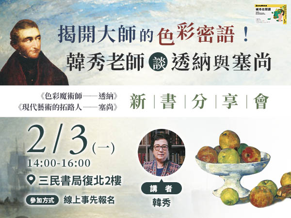 揭開大師的色彩密語!韓秀老師談透納與塞尚|《色彩魔術師──透納》《現代藝術的拓路人──塞尚》新書分享會