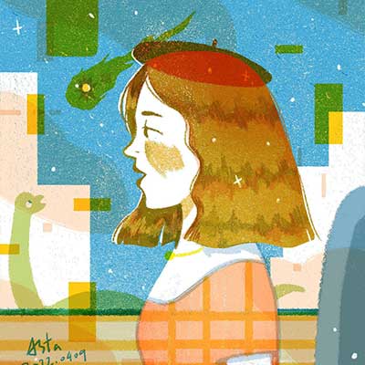 本書插畫由薛慧瑩擔任,她運用黃、綠、藍、棕色等主色調,隨著翻頁反覆出現,和不干擾閱讀的文圖配置,形成活潑的節奏。而她為故事中的巨人和小男孩設計可愛又圓融的造型,非常符合故事風格,也提升了圖文閱讀的樂趣。