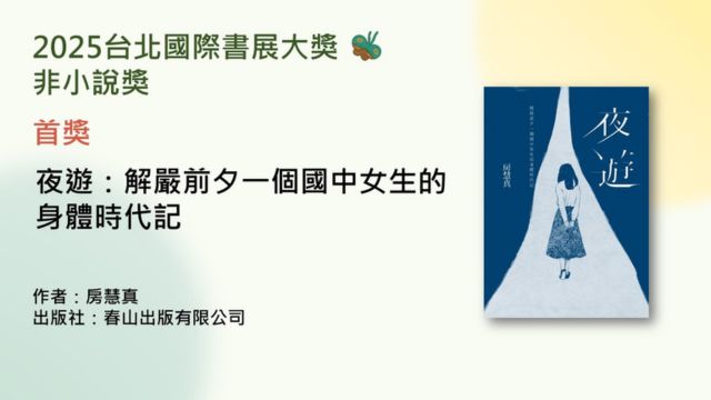 2025台北國際書展大獎 非小說首獎 房慧真《夜遊:解嚴前夕一個國中女生的身體時代記》得獎感言(編輯代表)