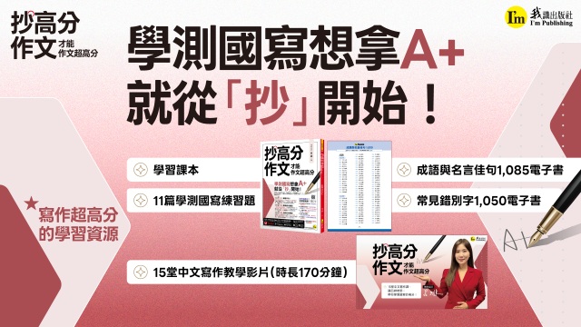 學測作文、國寫救星!《抄高分作文:才能作文超高分》帶你一次拿下作文A⁺,搶下關鍵分! 創意設計商品, 史地人文, 學習及專業書籍, 影音數位產品, 文學藝術, 書籍介紹, 焦點人物, 生活風格, 考試教科書, 青少年讀物
